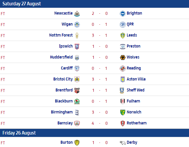 Na prvem mestu so presenetlijo Huddersfield Town, na drugem pa po petih tekmah tičijo ”kočarji”, varovanci Slavise Jokanovica so do sedaj zbrali že enajst točk.Vse rezultate petega kroga Championshipa si lahko ogledate na spodnji sliki.