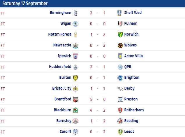 Vse tekme kroga so bile odigrane v soboto, Newcastle je po veliki zmagi na Loftus Roadu (6-0 vs. QPR) doma izgubili proti Wolverhamptonu. Kot ste najverjetneje že navajeni vas bomo tudi tokrat ‘obvestili’ o zmagi Huddersfielda, ki je v izjemni formi in tiči na vrhu lestvice.