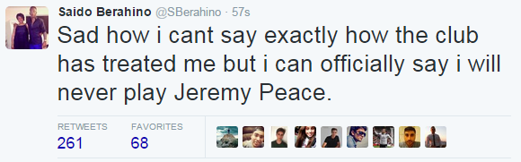 Prihodnost Saida Berahina je v West Bromwich Albionu še vedno pod velikim vprašajem, saj je omenjeni nogometaš včeraj na twitterju izjavil, da nebo nikoli več igral za Jeremyja Peacea (lastnik WBA-ja).