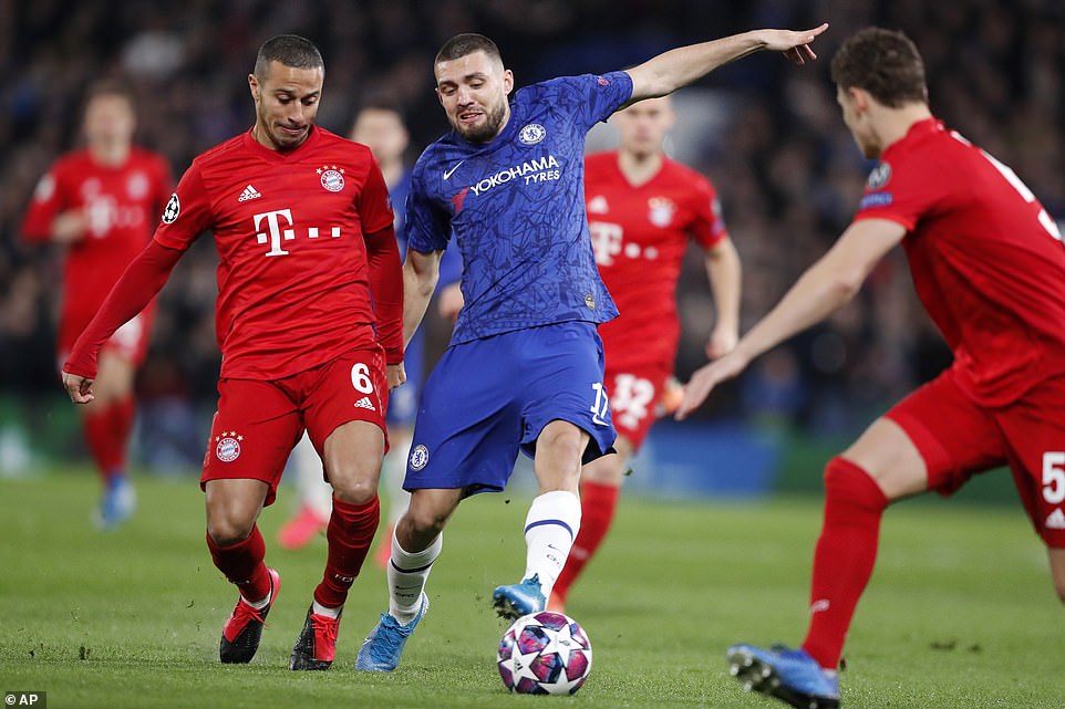 V prve dobre pol ure igre so do resnih priložnosti le nogometaši Bayerna. Prvi je zapretil Kingsley Coman, a je njegov strel zletel mimo vrat. Po strelu Roberta Lewandowskega se je s sijajno obrambo izkazal domači vratar Willy Caballero, slednjega je nekoliko kasneje rešil okvir vrat, ko je Thomas Muller z glavo nastreljal prečko. V izdihljajih prvega polčasa je prvo resno priložnost zabeležil tudi Chelsea. Marcos Alonso je s pravo raketo prebudil Manuela Neuerja, ki je fantastično obranil močan strel.