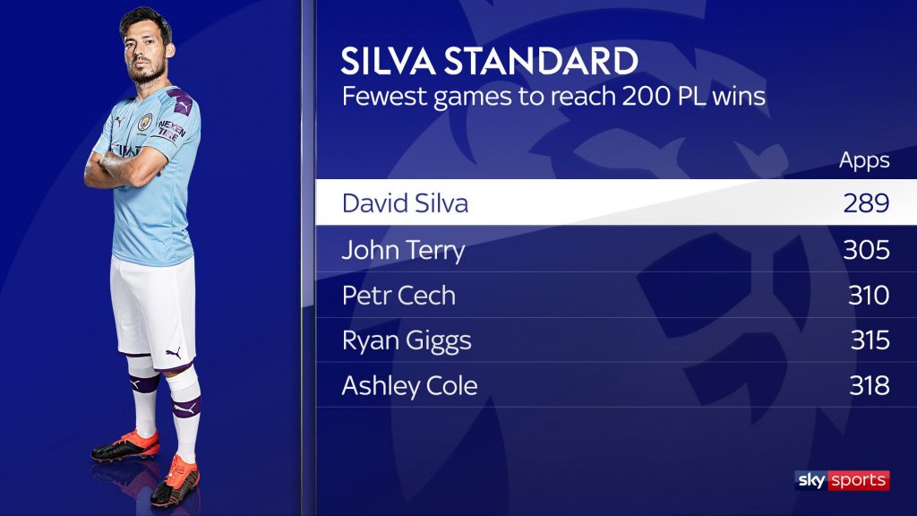 Na sobotni tekmi med Evertonom in Manchester Cityjem (1 : 3) je David Silva postal igralec, ki je v zgodovini Premier League najhitreje prišel do mejnika 200 zmag. Obenem je Španec zaenkrat edini, ki mu je to uspelo v manj kot 300 tekmah.