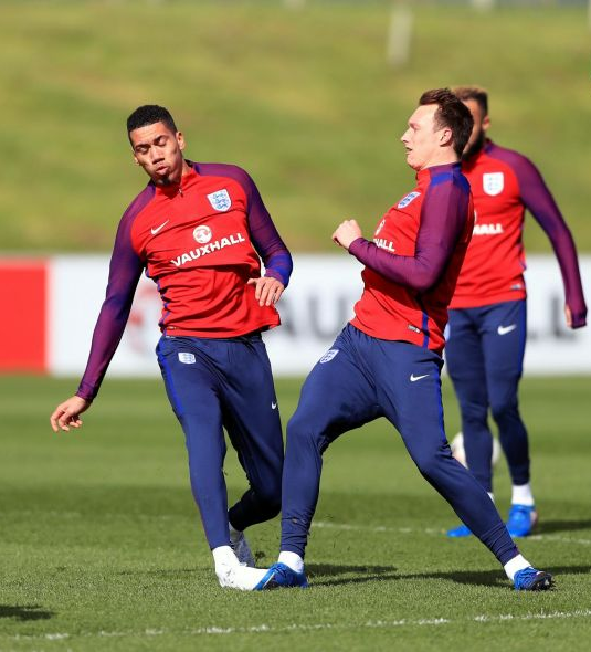 Najbrž veste, da sta med poškodovanimi Unitedovci tudi branilca Chris Smalling in Phil Jones. Na treningu angleške izbrane vrste sta se poškodovala tako, da je en nerodno brcnil drugega oziroma drugi prvega. Saj ni važo. Oba sta out. “Raje molči”, ob omembi tega incidenta pravi Mourinho.