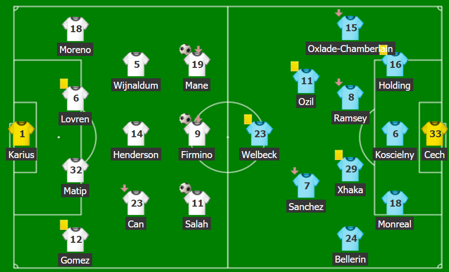 V tem tednu je Arsene Wenger zares zanimivo sestavil obrambno vrsto, na položaj vezista pa postavil Ramseya, ki je usmerjen precej bolj napadalno kot Elneny in zato ni toliko discipliniran. Vezisti morajo opraviti tudi obrambne naloge, kar je na takem nivoju nujno potrebno. Zakaj sta na klopi obsedela tako Lacazette kot Sead Kolašinac, ve le Francoz sam. A le ugibamo lahko, če sta dva igralca dovolj za drastično spremembo poteka tekme. V nogometnem žargonu dostikrat rečemo, da je napad najboljša obramba. S to taktiko je Arsenal nase avtomatično povlekel napadalce Liverpoola, ki pa jim branilci Arsenala niso bili dorasli.