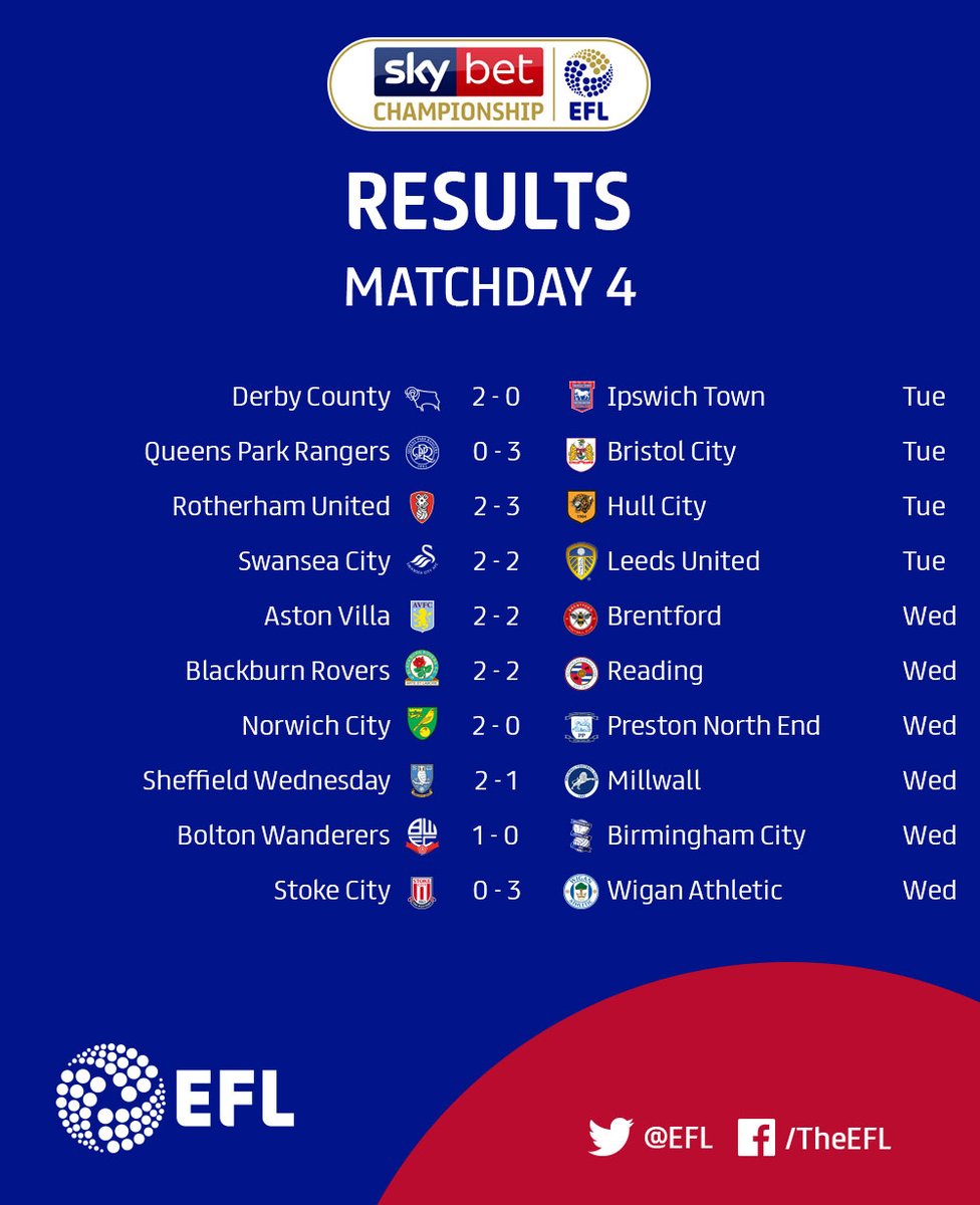 V torek so bile na sporedu štiri tekme, do prve zmage sezone na domačem terenu je prišel Frank Lampard, Derby County je na Pride Parku brez večjih težav premagal Ipswich.