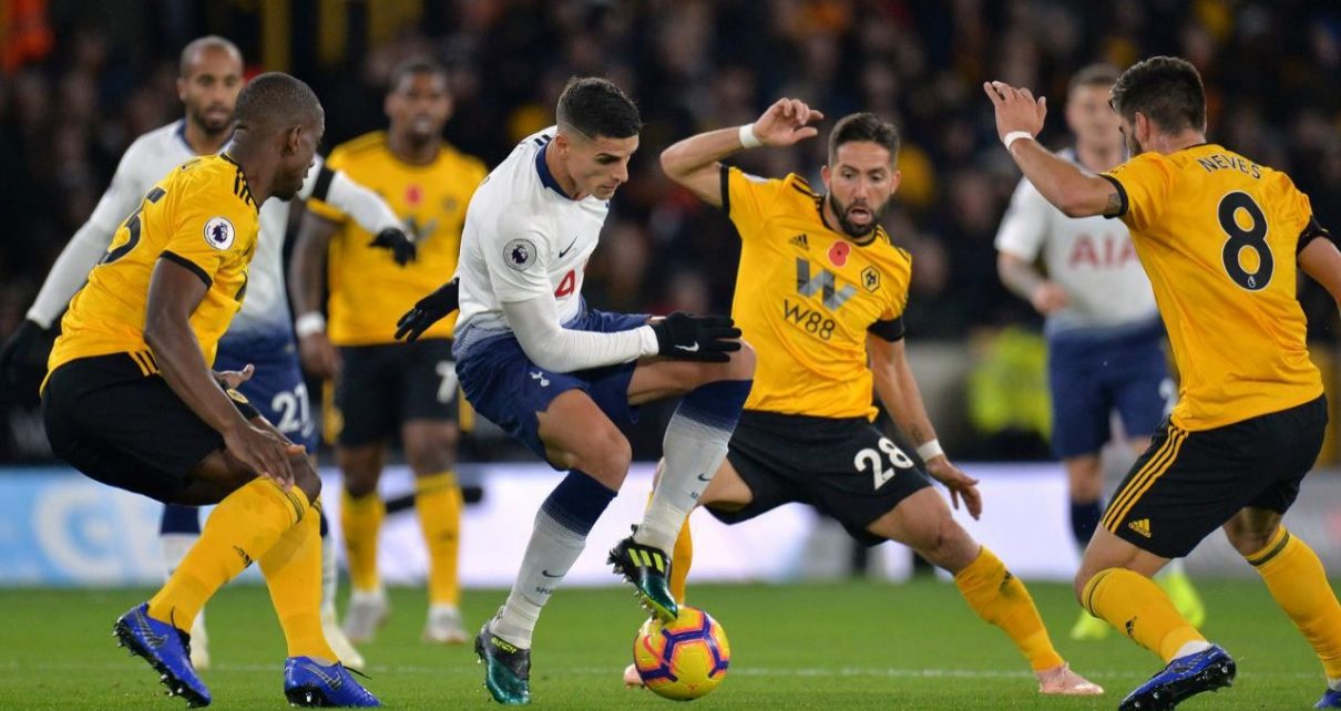 Tottenham je v 13. minuti povedel, ko je odbitek po strelu Dele Allija pospravil Steven Bergwijn in povedel Spurse v vodstvo. Slednji so vodili le 14 minut, potem pa je za goste izenačujoči zadetek zabil Matt Doherty, njegov drugi gol na zadnjih dveh tekmah. V zadnji minuti prvega polčasa je domače znova v vodstvo popeljal branilec Serge Aurier, ki je brez oklevanja sprožil proti gostujočim vratom in natančno zadel ob levi vratnici. Drugi polčas je bil, kar se priložnosti tiče, precej zaspan, saj so navijači videli zgolj dve pravi priložnosti, a sta se obe spremenili v zadetek. Prvič je bil natančen Diogo Jota, ki je spretno premagal Paula Gazzanigo in izenačil na 2:2. V 73. minuti so gostje povedli, ko je bil natančen Raul Jimenez, s 13. zadetkom v sezoni Premier lige, toliko jih je lani zabil v celi sezoni. Spursi niso našli odgovora in Volkovi so zmagali z 2:3.