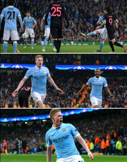 Četa Laurenta Blanca je v drugi polčas krenila bistveno odločneje. Že v samem začetku je Ibrahimovic nevarno zapretil s prostega strela, odlično je posredoval Hart. PSG je nato celo prišel do začetka, a iz prepovedanega položaja. V drugem delu drugega polčasa je City, tako kot v prvem, prevzel vajeti igre. Kevin De Bruyne je v 76. minuti prikazal trenutek magije in z zvitim strelom izven kazenskega prostora premagal gostujočega vratarja Trappa. V zadnjih 10 minutah je PSG znova pritisnil, a več kot jalovih napadov ni zmogel.