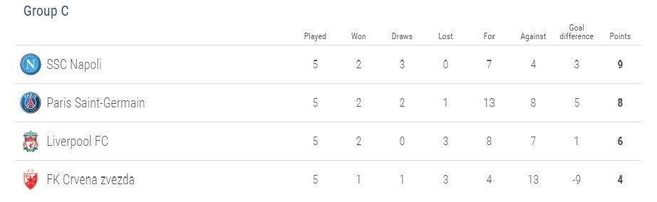 Če Crvena Zvezda doma ne izgubi, potem bi klub z Anfielda napredoval z zmago s kakršnimkoli izzidom. Če pa PSG po pričakovanjih premaga Beograjčane, potem Liverpool potrebuje zmago z 1 : 0 ali z vsaj dvemi zadetki razlike, da na drugem mestu prehiti Napoli. V tem primeru bi prvi seveda zaključili Neymar in druščina. Bo Redsem uspelo?